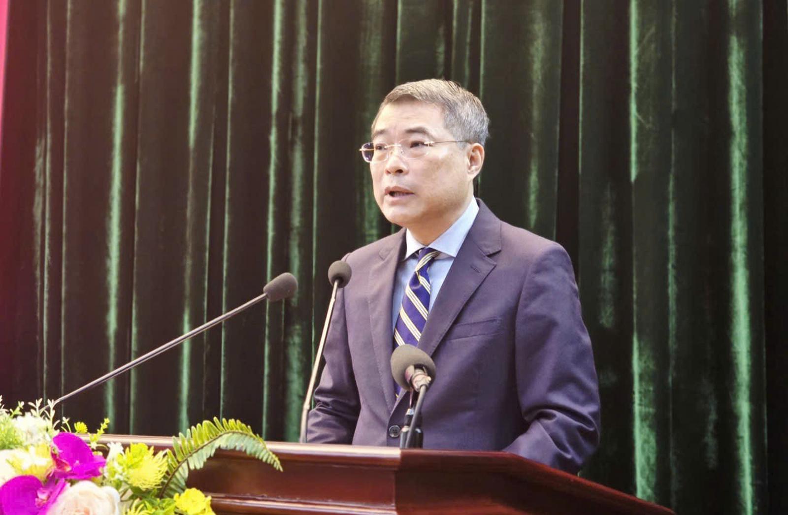 Tân Bí thư Tỉnh ủy Lạng Sơn Hoàng Quốc Khánh phát biểu nhận nhiệm vụ. Ảnh: Duy Chiến
