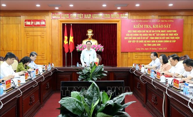 Ngày 30-7, Ủy viên Bộ Chính trị, Bí thư Trung ương Đảng, Trưởng ban Tuyên giáo và Dân vận Trung ương Nguyễn Trọng Nghĩa cùng đoàn công tác của Trung ương đã kiểm tra, khảo sát việc thực hiện Chỉ thị số 30-CT/TW ngày 18-2-1998 của Bộ Chính trị (khóa VIII) về “Xây dựng và thực hiện quy chế dân chủ ở cơ sở”; tình hình và kết quả thực hiện sắp xếp tổ chức bộ máy đơn vị hành chính 2 cấp tại tỉnh Lạng Sơn.