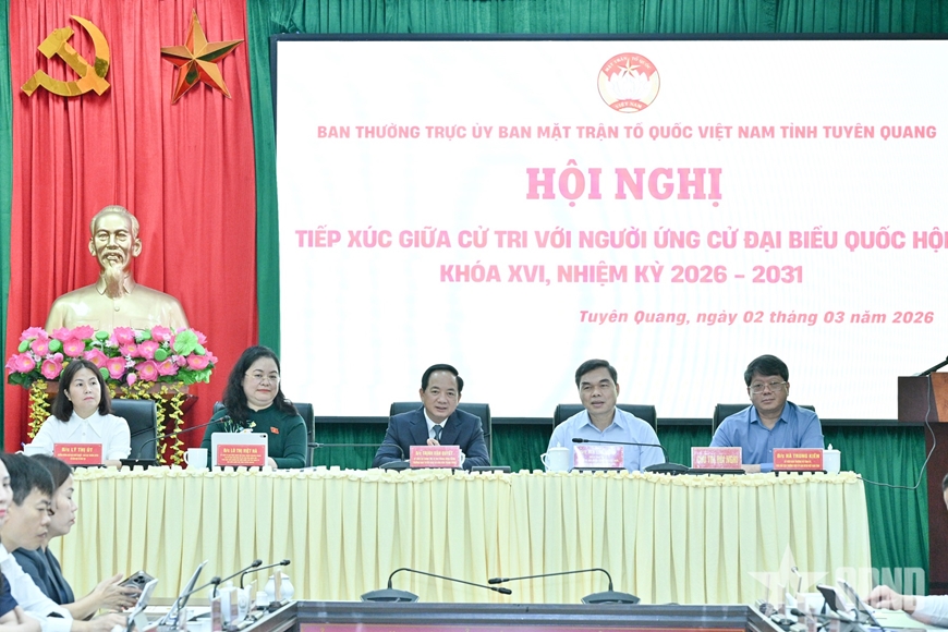 Sáng 2-3, tại tỉnh Tuyên Quang, Ban Thường trực Ủy ban Mặt trận Tổ quốc Việt Nam tỉnh Tuyên Quang chủ trì, phối hợp tổ chức Hội nghị tiếp xúc cử tri để vận động bầu cử đối với những người ứng cử đại biểu Quốc hội khóa XVI tại đơn vị bầu cử số 3.