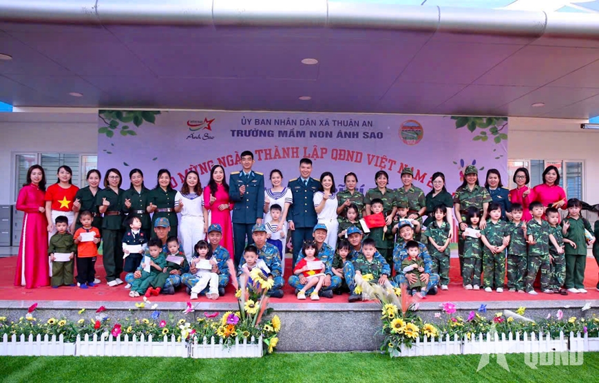 Trước đó, Trường Mầm non Ánh Sao cũng tổ chức các hoạt động ý nghĩa nhân dịp kỷ niệm Ngày thành lập QĐND Việt Nam, tạo cơ hội để các cháu tham gia những trải nghiệm làm bộ đội phù hợp với lứa tuổi.