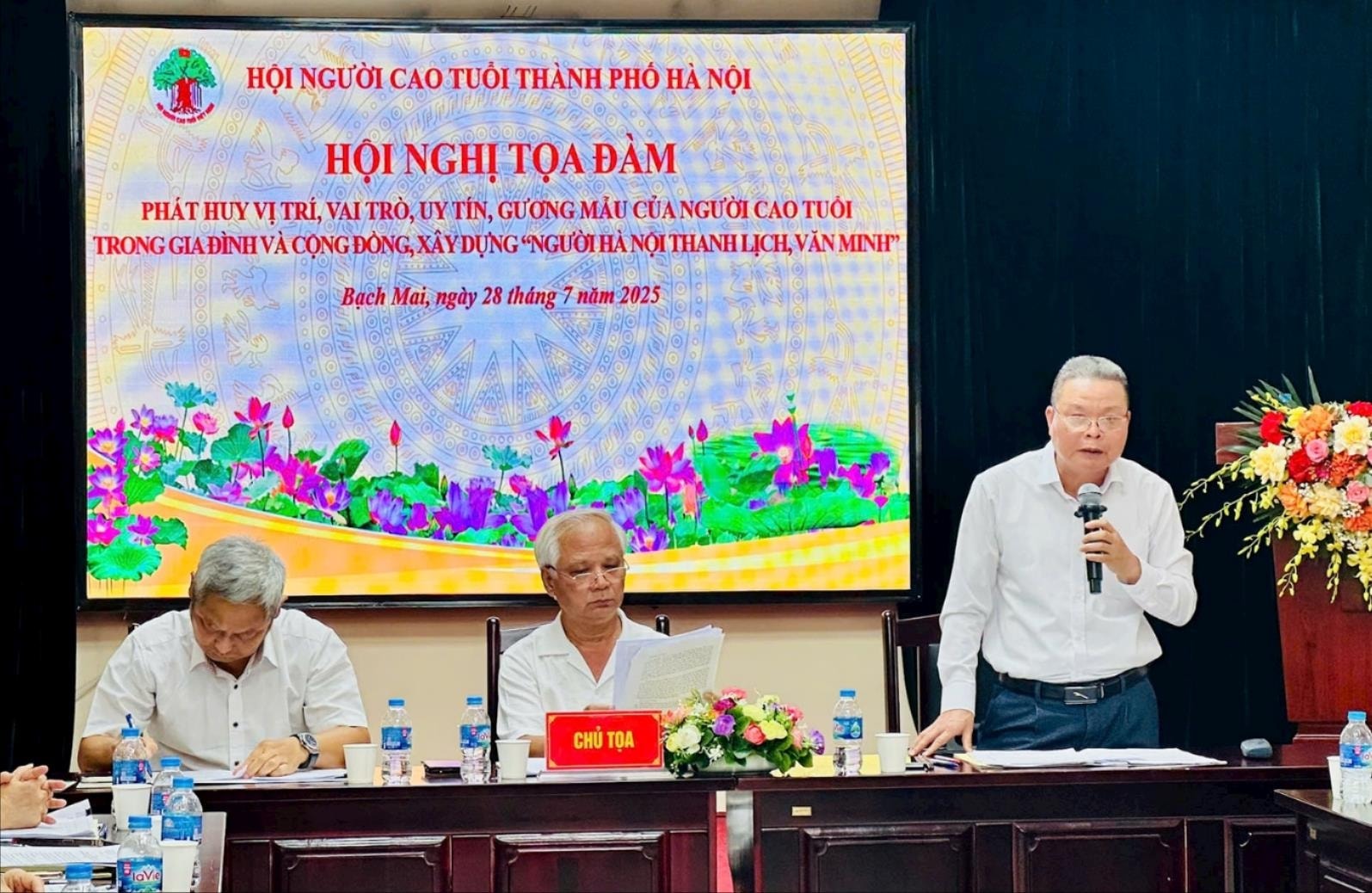 Khai mạc tọa đàm, Phó Chủ tịch Hội Người cao tuổi thành phố Hà Nội Phạm Huy Giáp cho biết: Việc xây dựng và thực hiện Chuyên đề "Phát huy vị trí, vai trò, uy tín, gương mẫu của Người cao tuổi trong gia đình và cộng đồng, xây dựng “Người Hà Nội thanh lịch - văn minh”" được Hội Người cao tuổi thành phố chủ trì phối hợp với Sở Văn hóa - Thể thao và các sở, ngành liên quan, nhằm tuyên truyền, vận động cán bộ, hội viên, người cao tuổi phát huy vai trò, gương mẫu, đi đầu; từ đó lan tỏa rộng rãi trong cộng đồng dân cư và toàn thành phố thực hiện hiệu quả phong trào, đáp ứng yêu cầu phát triển của đất nước trong kỷ nguyên mới, kỷ nguyên vươn mình của dân tộc…