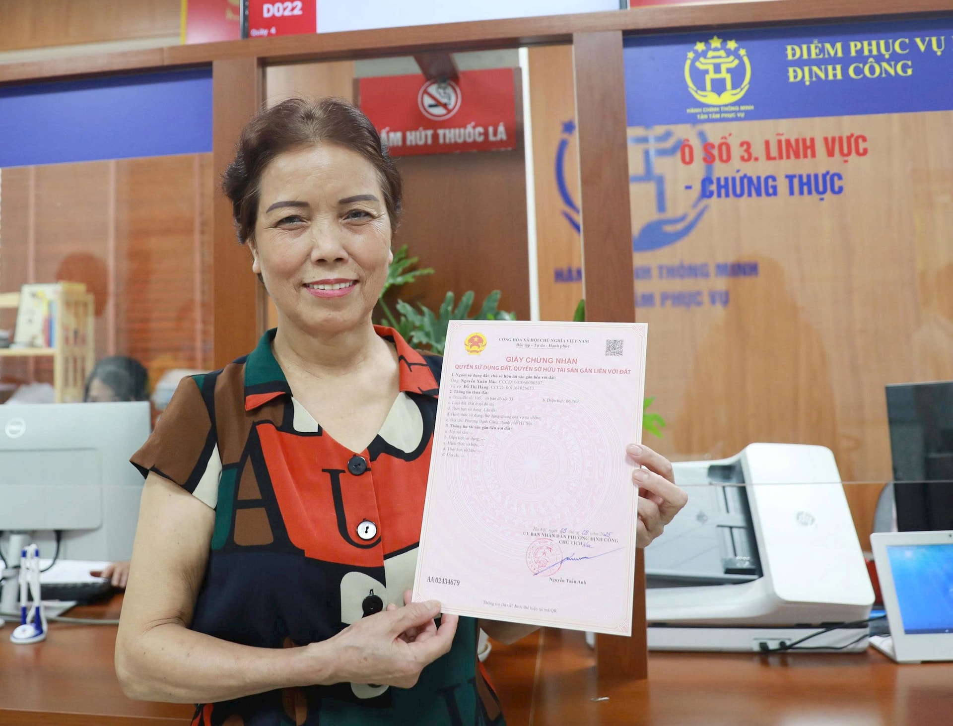 Hộ dân đầu tiên được phường Định Công trao "sổ đỏ" sau khi vận hành mô hình chính quyền mới