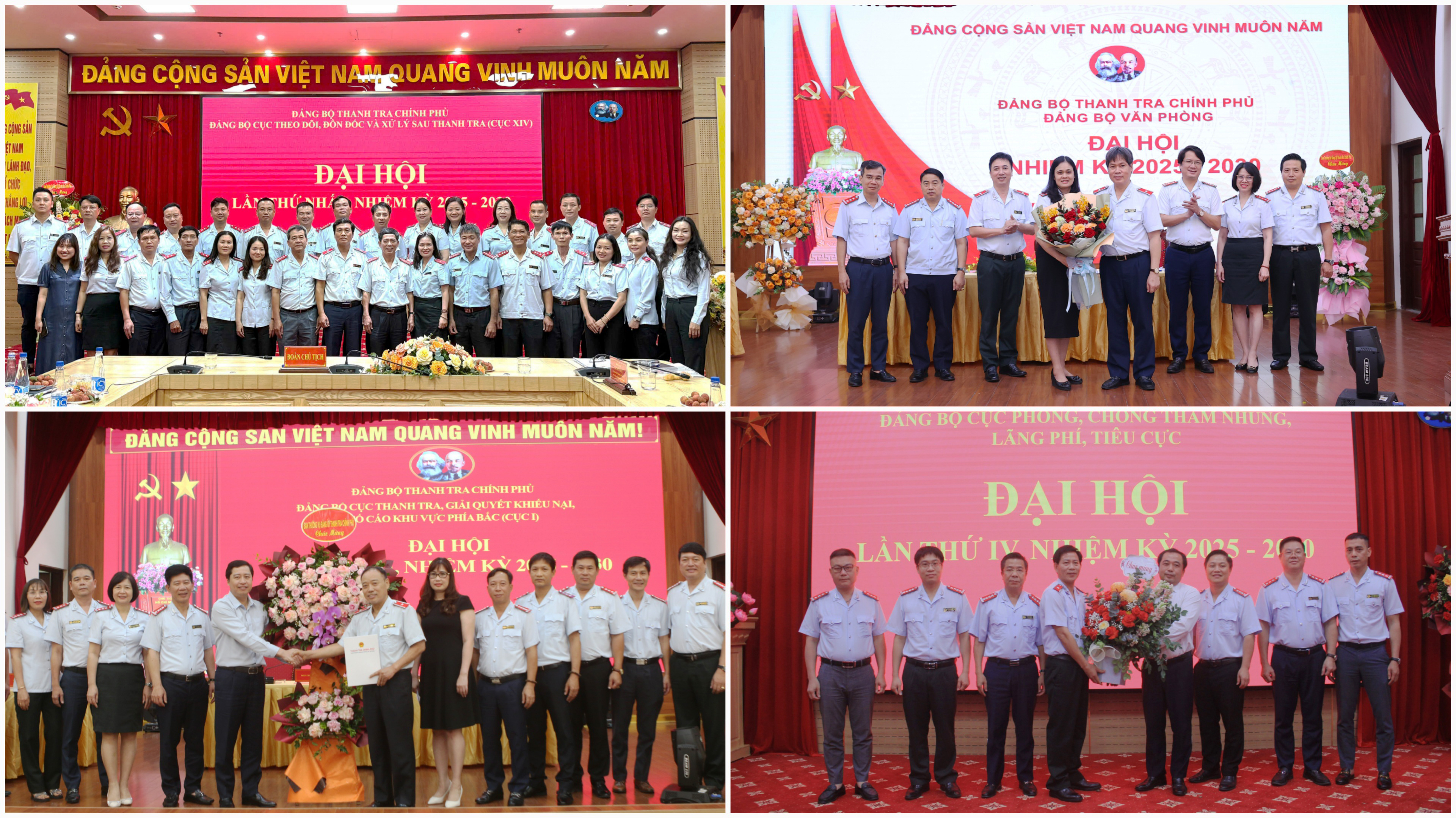 Ngày 3,4/7/2025, Đảng bộ Cục Theo dõi, đôn đốc và xử lý sau thanh tra (Cục XIV), Đảng bộ Văn phòng Thanh tra Chính phủ, Đảng bộ Cục Thanh tra, giải quyết khiếu nại, tố cáo khu vực phía Bắc (Cục I), Đảng bộ Cục IV tổ chức thành công Đại hội nhiệm kỳ 2025-2030