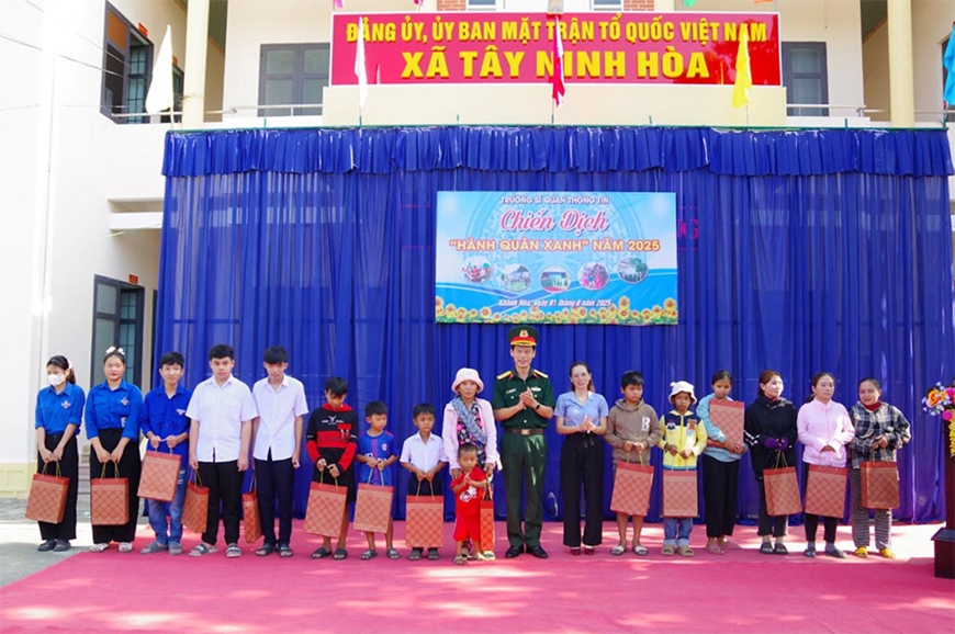 Từ ngày 25-7 đến 1-8, Trường Sĩ quan Thông tin tổ chức triển khai Chiến dịch “Hành quân xanh” về xã Tây Ninh Hòa, tỉnh Khánh Hòa. Đây là hoạt động thường niên, nhằm hỗ trợ chính quyền và người dân địa phương vùng sâu, vùng xa, đặc biệt là những khu vực còn nhiều khó khăn về kinh tế - xã hội. Chiến dịch tạo cơ hội cho cán bộ, học viên Nhà trường gặp gỡ, chia sẻ, giúp đỡ bà con, cùng chung tay xây dựng nông thôn mới, thể hiện hình ảnh cao đẹp Bộ đội Cụ Hồ thời kỳ mới.
