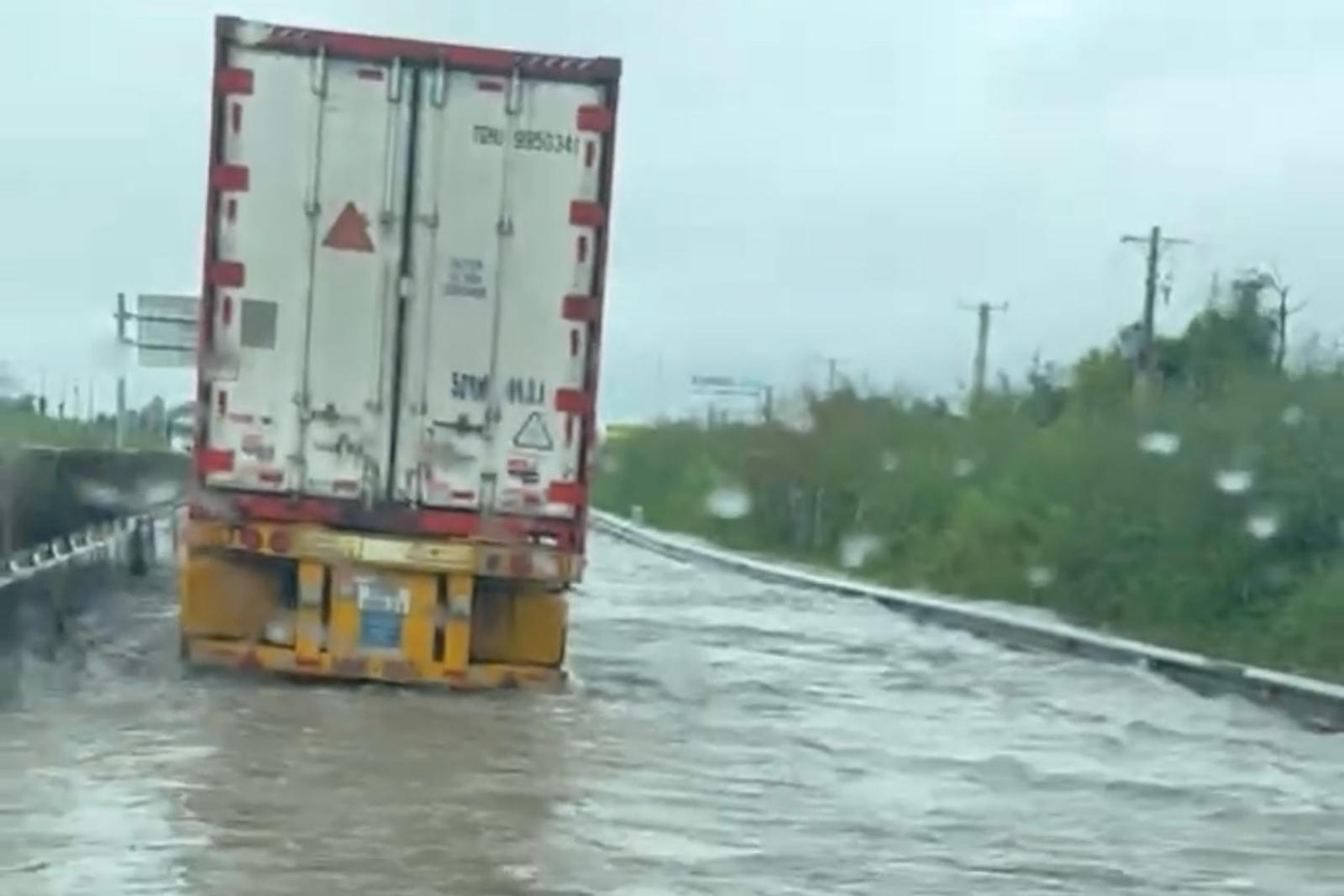 Các cơ quan chức năng khuyến cáo người tham gia giao thông không đi vào các vùng bị ngập, bị sạt lở. Ảnh: Phạm Duy
