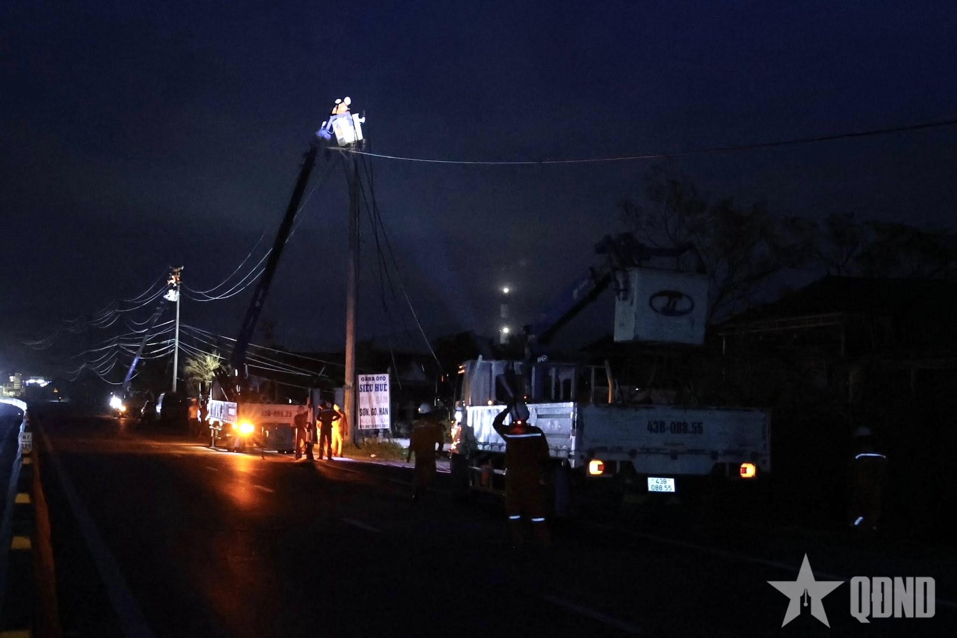 Công nhân ngành điện xuyên đêm khôi phục lưới điện.