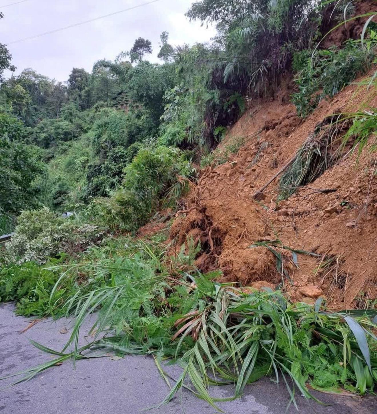 Một điểm sạt lở trên các tuyến giao thông của Nghệ An, khiến việc cứu trợ đồng bào lũ lụt gặp khó khăn. Ảnh: CSCS