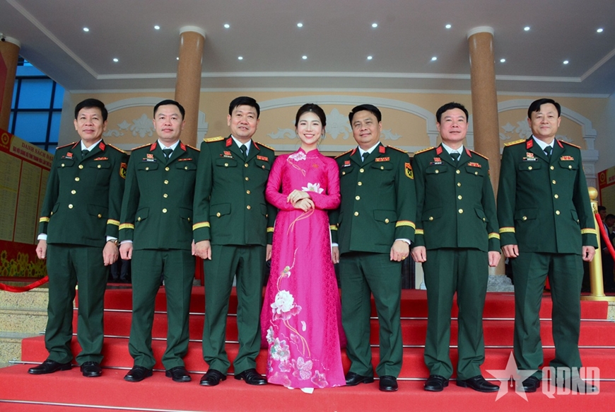 Nũ bí thư Tỉnh đoàn chụp ảnh cùng các đại biểu Quân đội tại Đại hội.