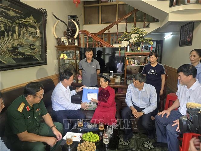| Phó chủ tịch Quốc hội Nguyễn Khắc Định thăm, tặng quà cho bà Nguyễn Thị Diễm (vợ liệt sĩ tại phường Hà Lầm, tỉnh Quảng Ninh). |
