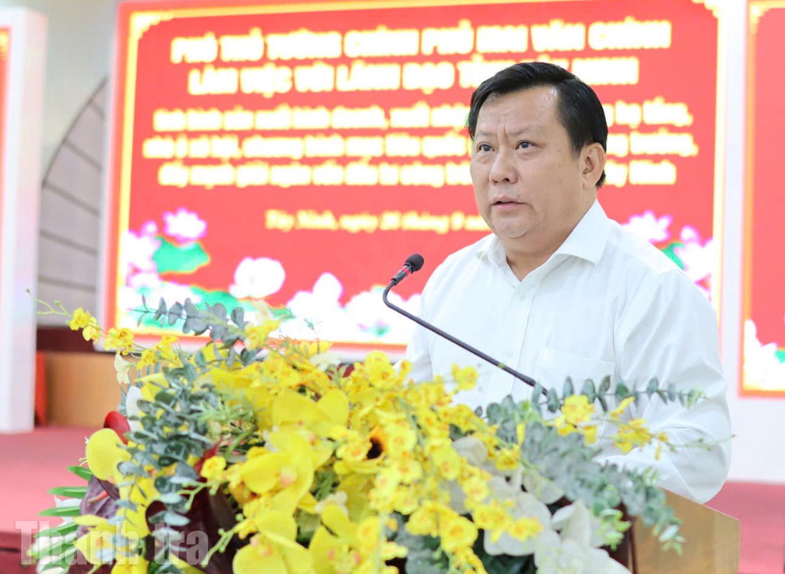 Theo Phó Thủ tướng, thời gian tới tỉnh Tây Ninh cần xác định tiềm năng, thế mạnh của tỉnh để phát huy lợi thế, đẩy mạnh phát triển; xây dựng đội ngũ cán bộ cơ sở vững mạnh, triển khai mạnh mẽ công tác chuyển đổi số, cải cách hành chính; kịp thời tháo gỡ khó khăn vướng mắc, đẩy mạnh chuyển đổi cơ cấu kinh tế, huy động các nguồn lực cho công tác an sinh xã hội, đẩy nhanh giải ngân vốn đầu tư công, nhất là các công trình trọng điểm; tập trung nguồn lực phát triển kết cấu hạ tầng kỹ thuật nhất là lĩnh vực y tế, giáo dục, văn hóa, sớm hoàn thiện quy hoạch tỉnh mới.