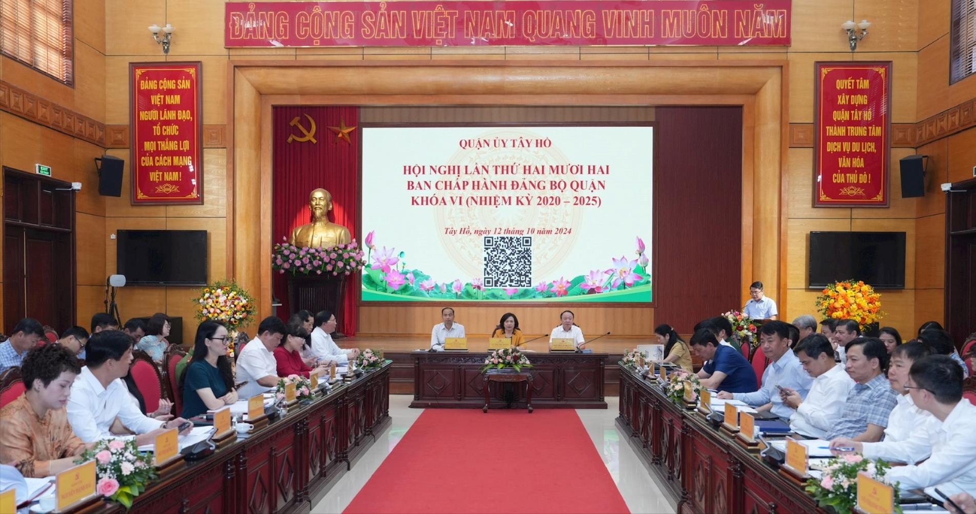 Sáng 12-10, Ban Chấp hành Đảng bộ quận Tây Hồ đã tổ chức hội nghị lần thứ 22, nhiệm kỳ 2020-2025.