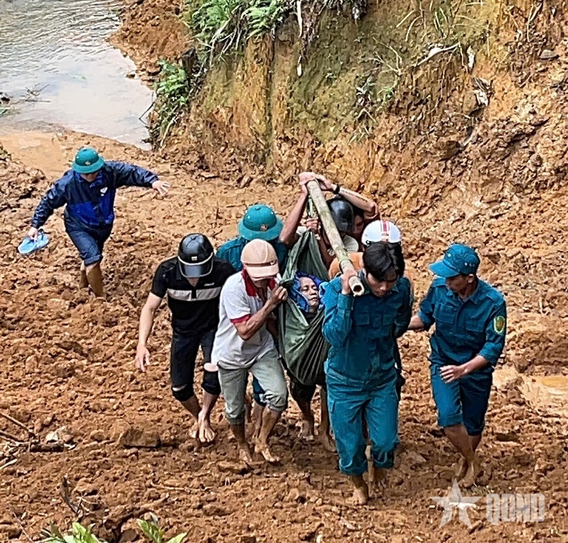 Do ảnh hưởng của mưa lũ kéo dài, nhiều tuyến đường trên địa bàn xã bị sạt lở, giao thông cắt, đặc biệt là tuyến đường vào trung tâm xã bị đứt gãy nặng, phương tiện cơ giới không thể di chuyển qua lại. Trước tình hình đó, Dân quân xã cùng người dân đã chia thành nhiều nhóm, huy động cáng tạm, dây thừng và phương tiện thô sơ để trung chuyển bệnh nhân qua các đoạn đường bị chia cắt.