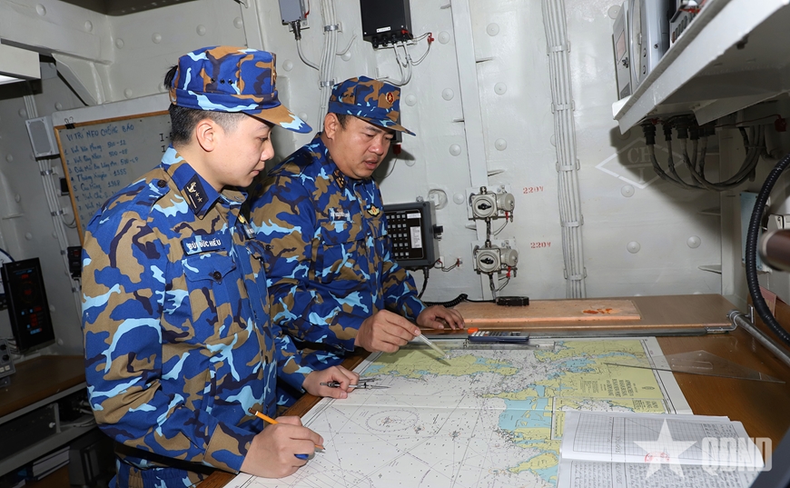 | Các sĩ quan Hải quân Hàn Quốc lên thăm và trao đổi với đoàn công tác và chỉ huy Tàu 015 - Trần Hưng Đạo. |
