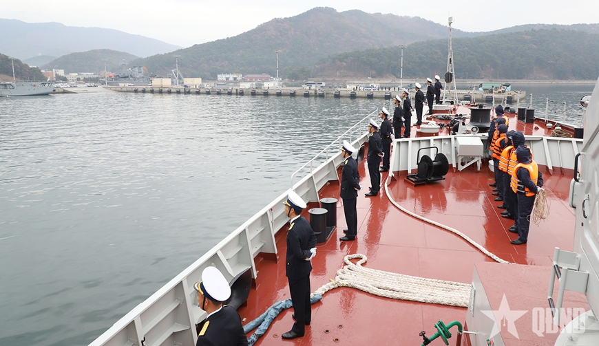 | Hải quân Hàn Quốc chào mừng đoàn công tác và Tàu 015 - Trần Hưng Đạo. |