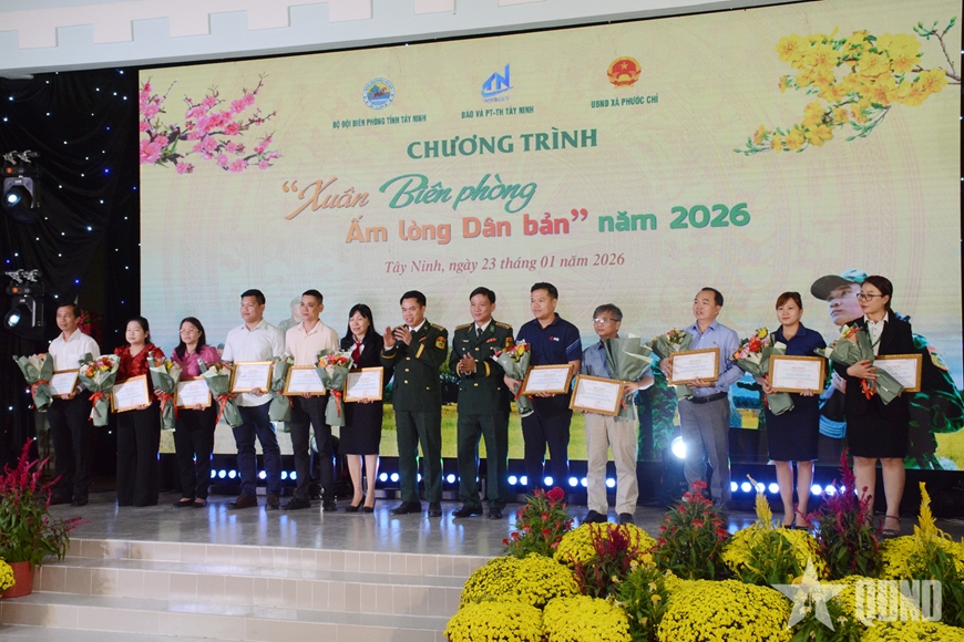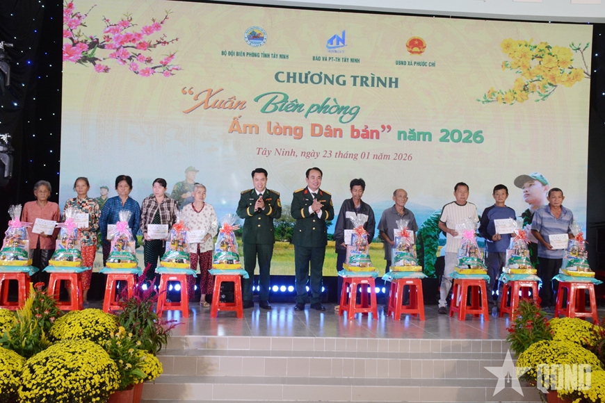 Sáng 23-1, tại xã Phước Chỉ (tỉnh Tây Ninh), Ban chỉ huy Bộ đội Biên phòng tỉnh Tây Ninh phối hợp với UBND xã Phước Chỉ và một số đơn vị, tổ chức chương trình “Xuân Biên phòng ấm lòng dân bản” năm 2026.