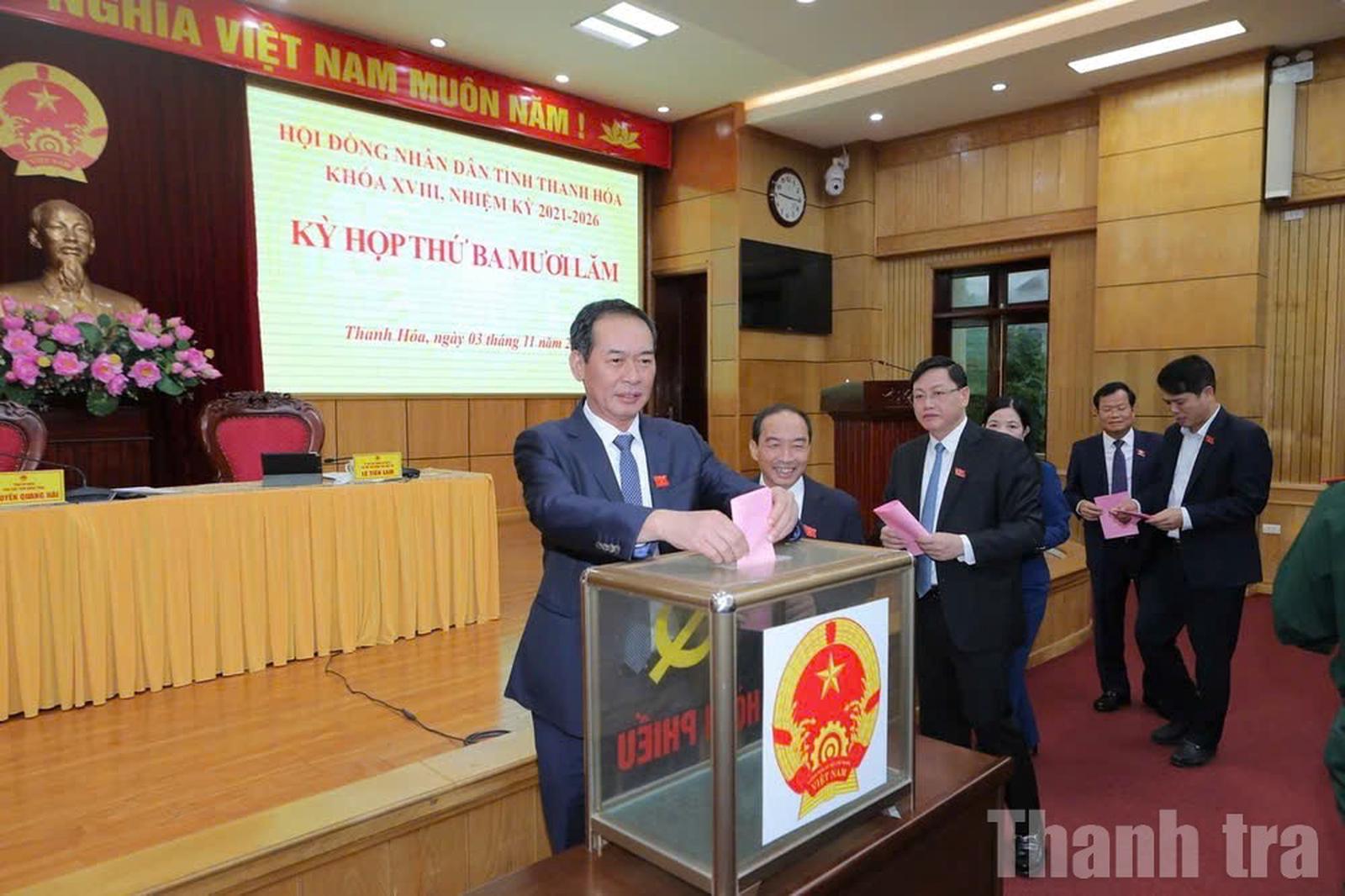 Trên cơ sở giới thiệu của Ban Thường vụ Tỉnh ủy Thanh Hóa và các tờ trình của UBND, Thường trực HĐND tỉnh, các đại biểu HĐND tỉnh đã tiến hành bỏ phiếu kín, bầu đồng chí Lê Quang Hùng, Ủy viên Ban Thường vụ Tỉnh ủy, Giám đốc Sở Tài chính và đồng chí Cao Văn Cường, Ủy viên Ban Chấp hành Đảng bộ tỉnh, Giám đốc Sở Nông nghiệp và Môi trường giữ chức vụ Phó Chủ tịch UBND tỉnh Thanh Hóa, nhiệm kỳ 2021–2026.