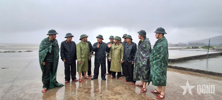 Lãnh đạo, chỉ huy Bộ CHQS tỉnh Thanh Hóa chỉ đạo ứng phó bão số 5. |
