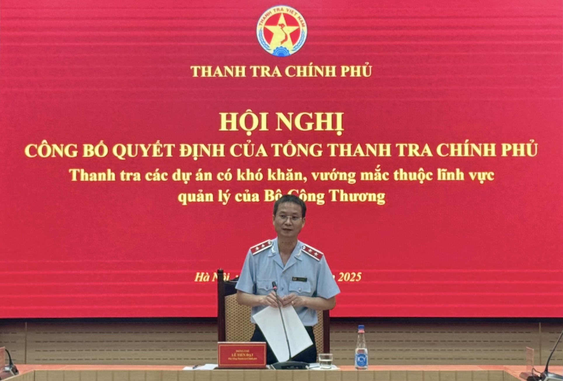 Sáng 28/7, đã diễn ra buổi công bố Quyết định số 696 ngày 23/7/2025 của Thanh tra Chính phủ về việc thanh tra các dự án có khó khăn, vướng mắc thuộc lĩnh vực quản lý của Bộ Công Thương.
