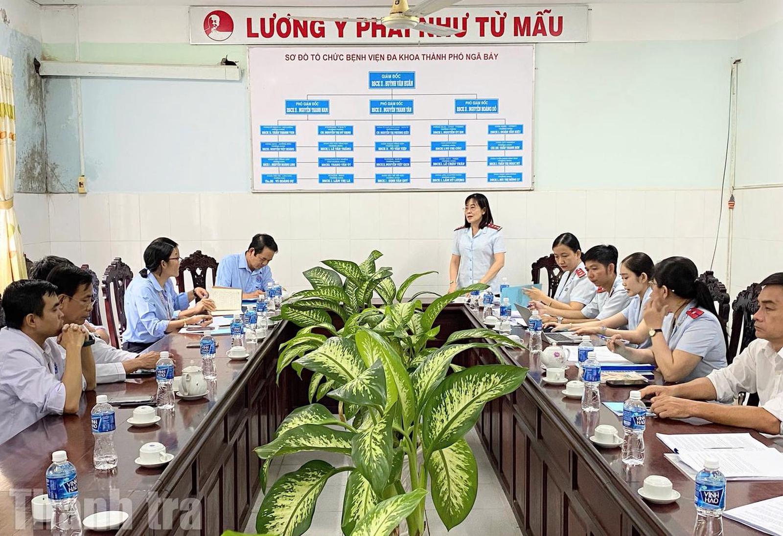 Thanh tra thành phố Cần Thơ công bố quyết định thanh tra tại Bệnh viện Đa khoa khu vực Ngã Bảy. Ảnh: Hữu Anh