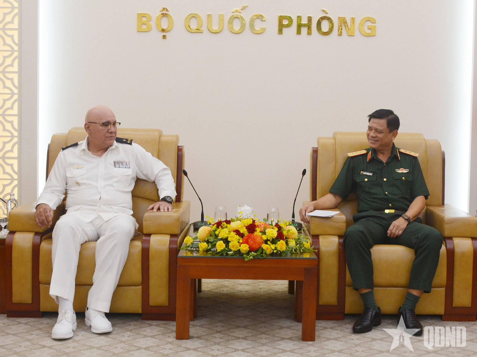 | Thượng tướng Nguyễn Trường Thắng trao đổi cùng Đại tá Román Osvaldo Jiménez Ortega. |