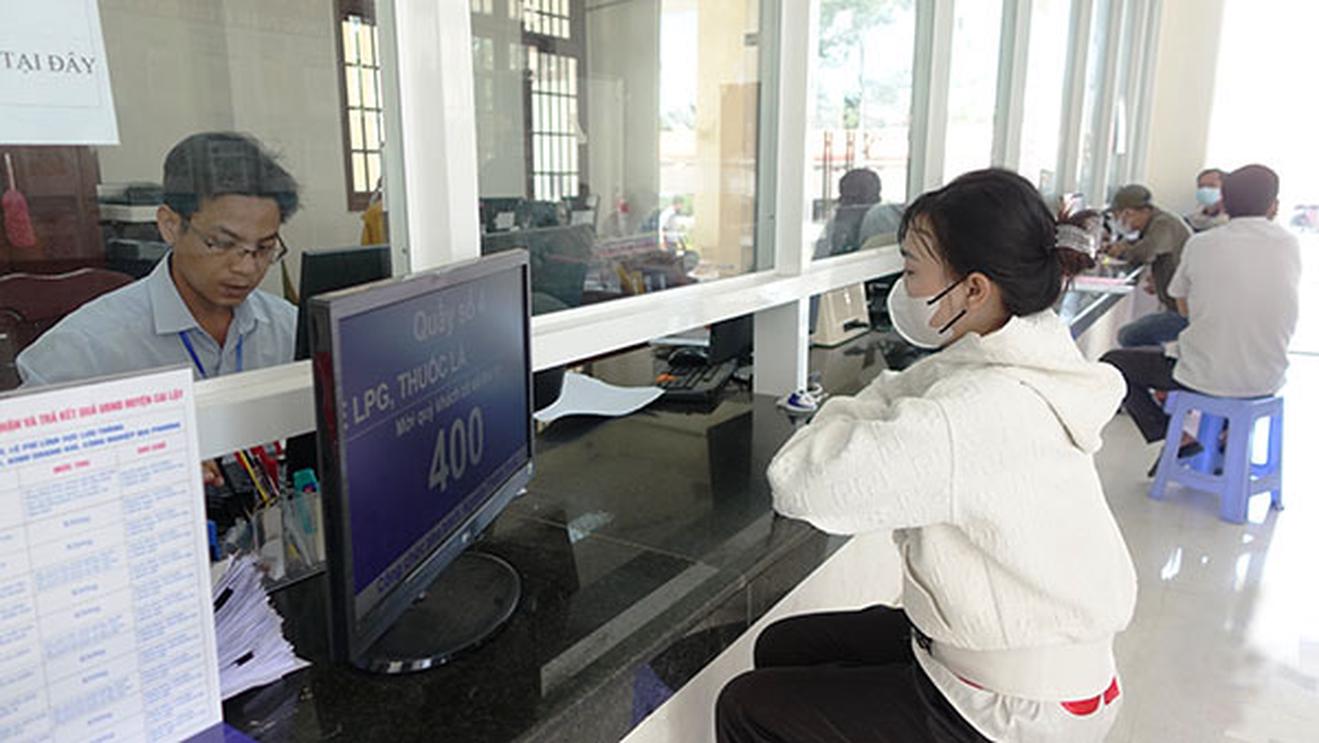 Người dân liên hệ giải quyết thủ tục hành chính tại bộ phận tiếp nhận và trả kết quả UBND huyện Cai Lậy. Ảnh: tiengiang.gov.vn
