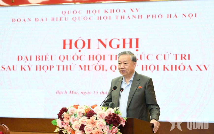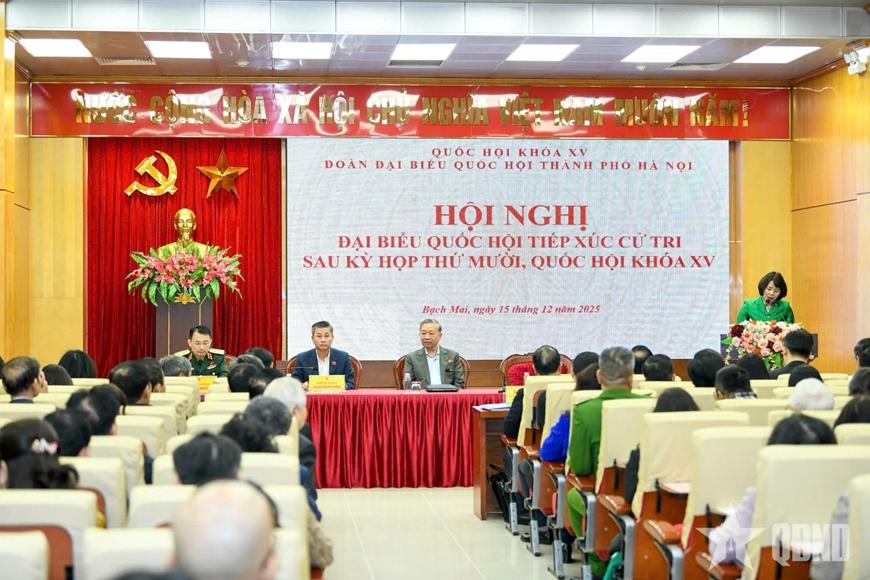 Sáng 15-12, tại Trụ sở Hội đồng nhân dân, Ủy ban nhân dân phường Bạch Mai, Tổng Bí thư Tô Lâm cùng Đoàn đại biểu Quốc hội TP Hà Nội tiếp xúc cử tri các phường: Ba Đình, Ngọc Hà, Giảng Võ, Đống Đa, Kim Liên, Văn Miếu - Quốc Tử Giám, Láng, Ô Chợ Dừa, Hai Bà Trưng, Vĩnh Tuy và Bạch Mai, để thông cáo kết quả Kỳ họp thứ mười, Quốc hội khóa XV.