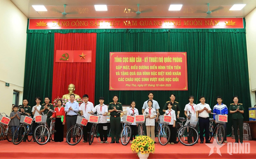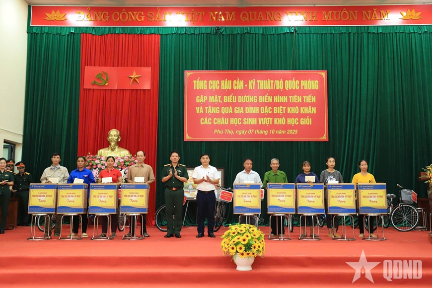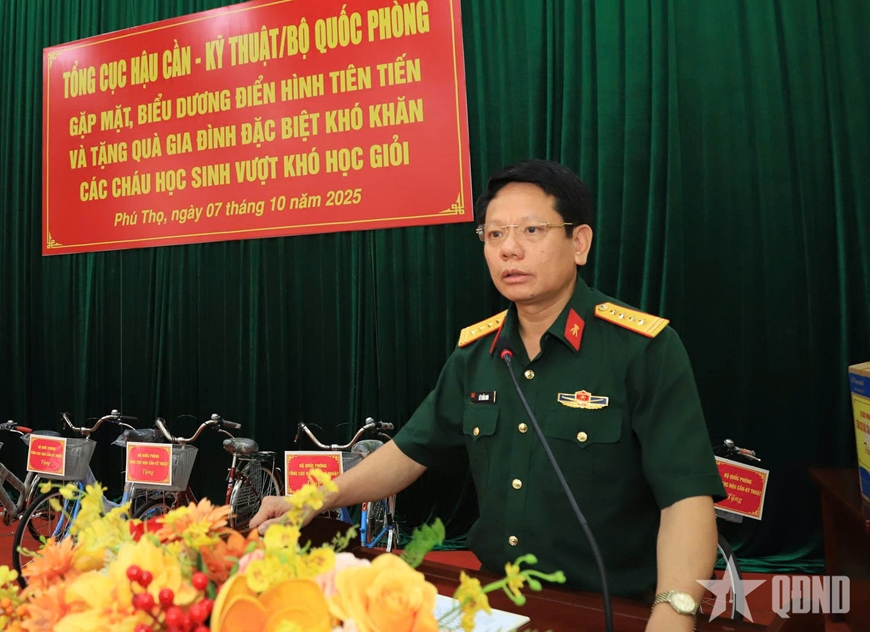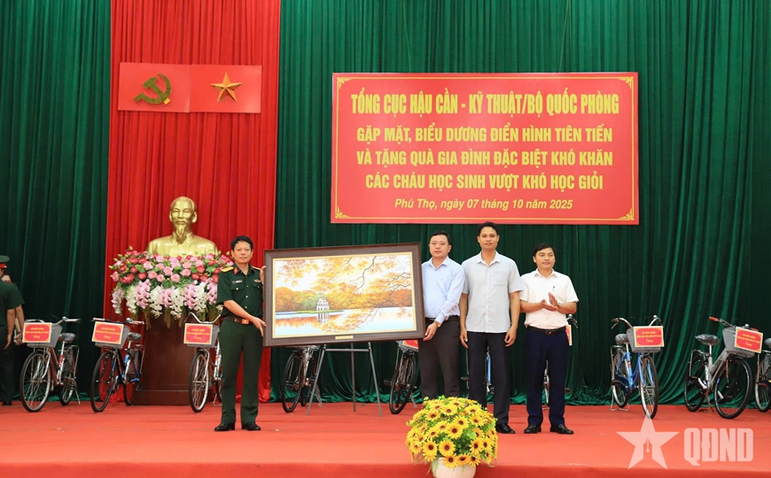 Ngày 7-10, tại xã Nhân Nghĩa, tỉnh Phú Thọ, Tổng cục Hậu cần-Kỹ thuật (HC-KT) tổ chức gặp mặt, biểu dương điển hình tiên tiến và tặng quà gia đình đặc biệt khó khăn, các cháu học sinh vượt khó học giỏi. Đại tá Lê Tuấn Anh, Phó chủ nhiệm Chính trị Tổng cục HC-KT chủ trì buổi gặp mặt.