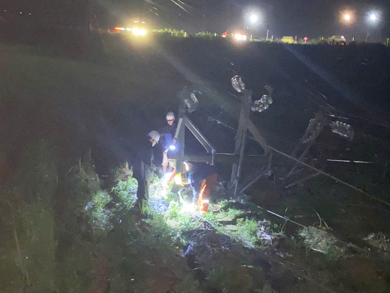 Đội Quản lý điện lực khu vực Lục Nam xử lý sự cố do mái tôn bay vào đường dây lúc 20h.