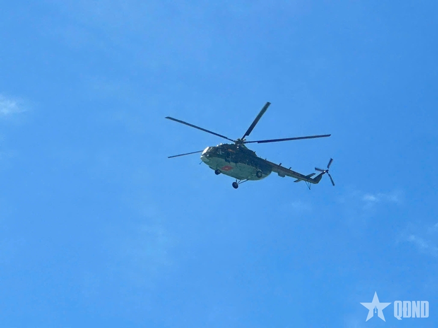 Máy bay trực thăng của Trung đoàn Không quân 930 (Sư đoàn Không quân 372, Quân chủng Phòng không - Không quân) bay tìm kiếm 3 nạn nhân mất tích tại Lý Sơn. |