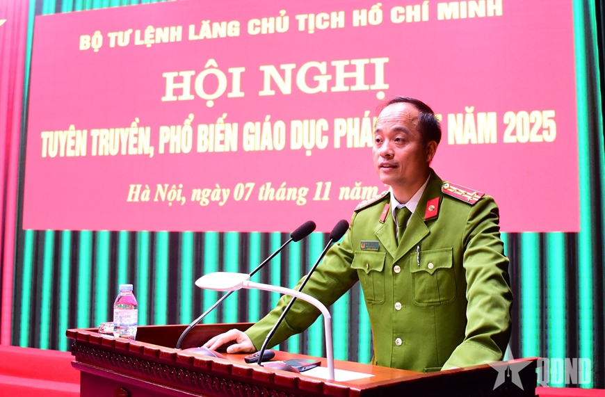 Sáng 7-11, Bộ tư lệnh Lăng Chủ tịch Hồ Chí Minh tổ chức Hội nghị tuyên truyền, phổ biến, giáo dục pháp luật năm 2025. Thiếu tướng Phạm Văn Hiếu, Bí thư Đảng ủy Đoàn 969, Chính ủy Bộ tư lệnh Lăng Chủ tịch Hồ Chí Minh dự, chỉ đạo hội nghị.