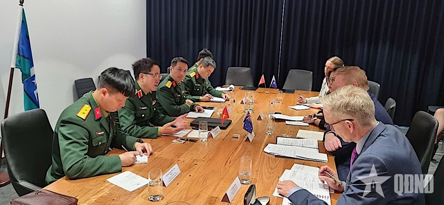 | Quang cảnh buổi làm việc giữa Cục Gìn giữ hòa bình Việt Nam và Cục Chính sách quốc tế Australia. Ảnh: TUẤN ĐỨC |
