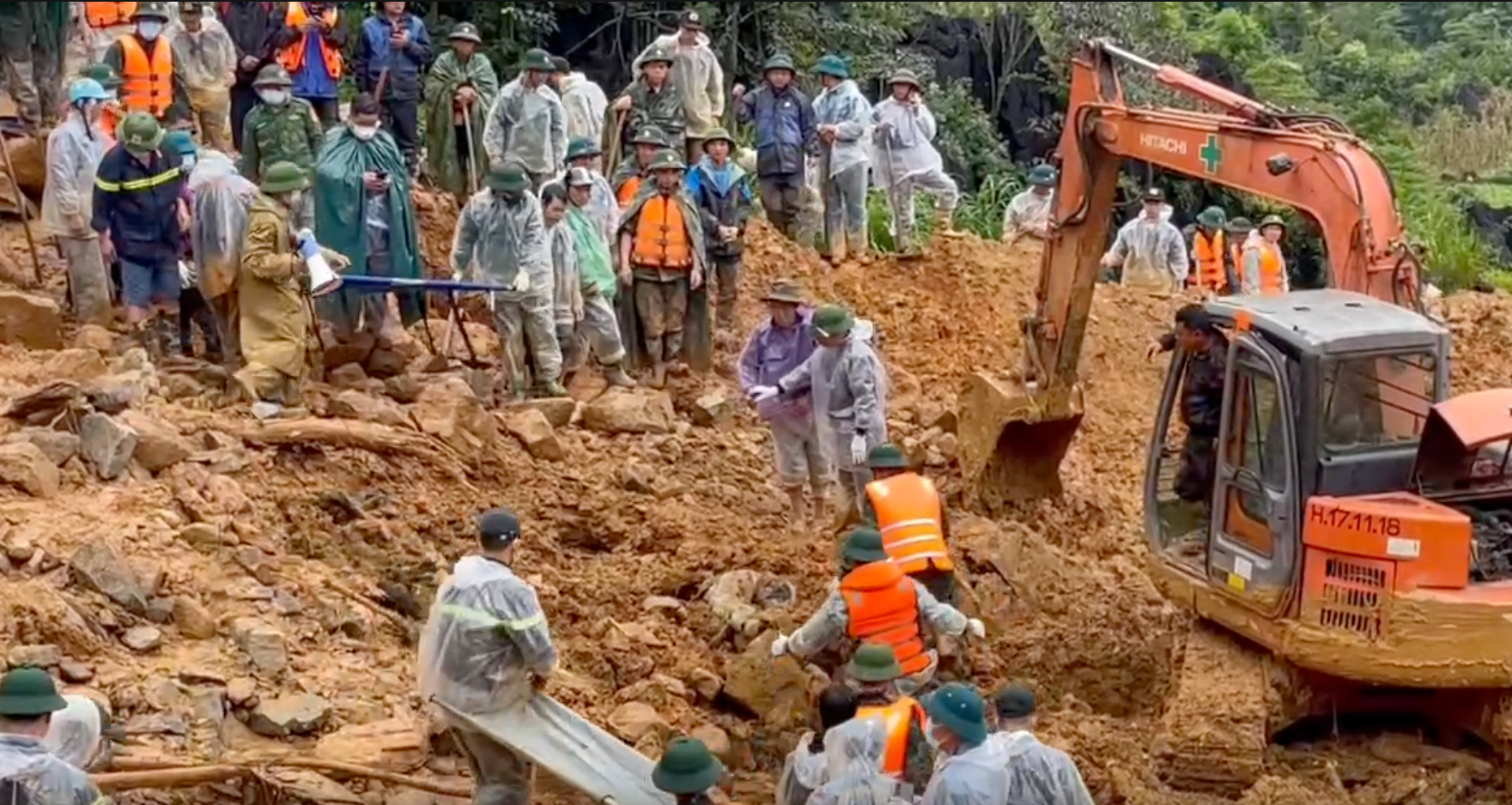 Mặc dù trời mưa rất to, lượng đất đá vẫn tiếp tục đổ xuống, địa hình dốc núi, nền đất xốp và trơn trượt, nguy cơ cao tiếp tục xảy ra lũ quét, sạt lở đất, song các cán bộ, chiến sĩ lực lượng Công an tỉnh Tuyên Quang khắc phục mọi khó khăn, nguy hiểm, triển khai phương án, nhanh chóng tìm kiếm người mất tích.