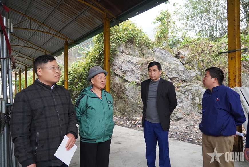 | Cán bộ xã Sơn Vĩ khảo sát thực tế, rà soát điều kiện cơ sở vật chất tại địa điểm dự kiến bố trí khu vực bỏ phiếu phục vụ bầu cử. |