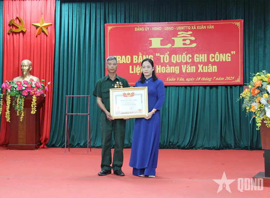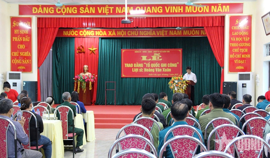 Sáng 18-7, tại xã Xuân Vân (tỉnh Tuyên Quang), Đảng ủy, HĐND, UBND, Ủy ban MTTQ xã Xuân Vân tổ chức công bố Quyết định của Thủ tướng Chính phủ và trao Bằng “Tổ quốc ghi công” cho thân nhân liệt sĩ Hoàng Văn Xuân.