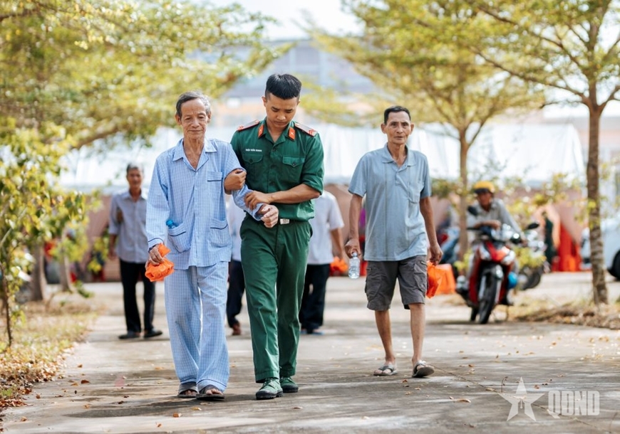 | Chiến sĩ lực lượng vũ trang tỉnh Tây Ninh hỗ trợ người già trong chương trình khám bệnh, cấp thuốc miễn phí giúp các gia đình chính sách, người có hoàn cảnh khó khăn. Ảnh minh họa: qdnd.vn |