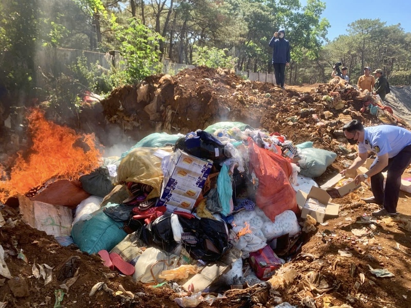 Lực lượng chức năng tiến hành tiêu huỷ hàng hoá vi phạm. Ảnh: ĐVCC