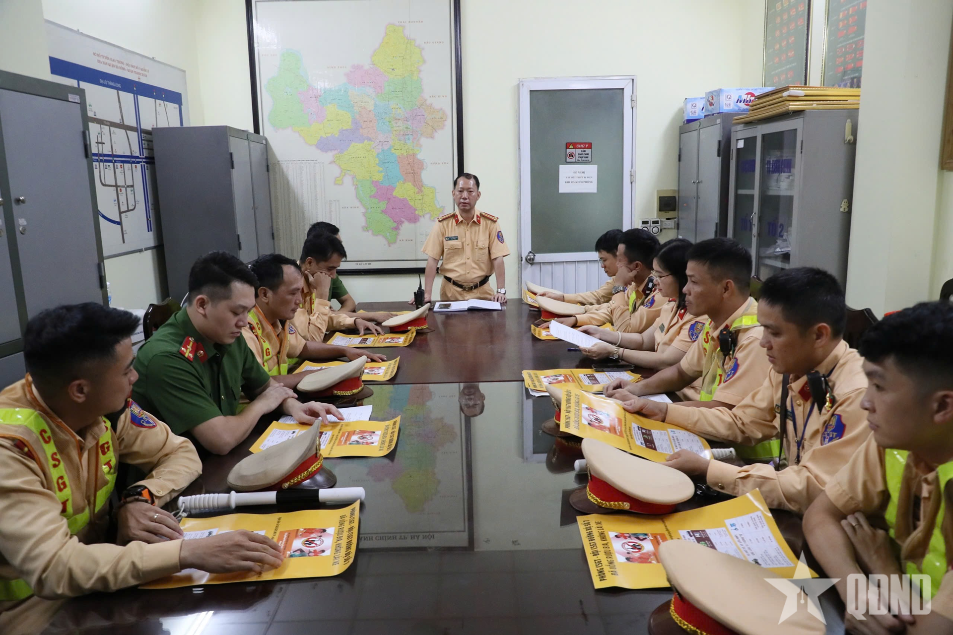 Thượng tá Đinh Trung Dũng, Phó đội trưởng Đội CSGT đường bộ số 7 triển khai phương án đến cán bộ, chiến sĩ trước giờ thực hiện nhiệm vụ. |