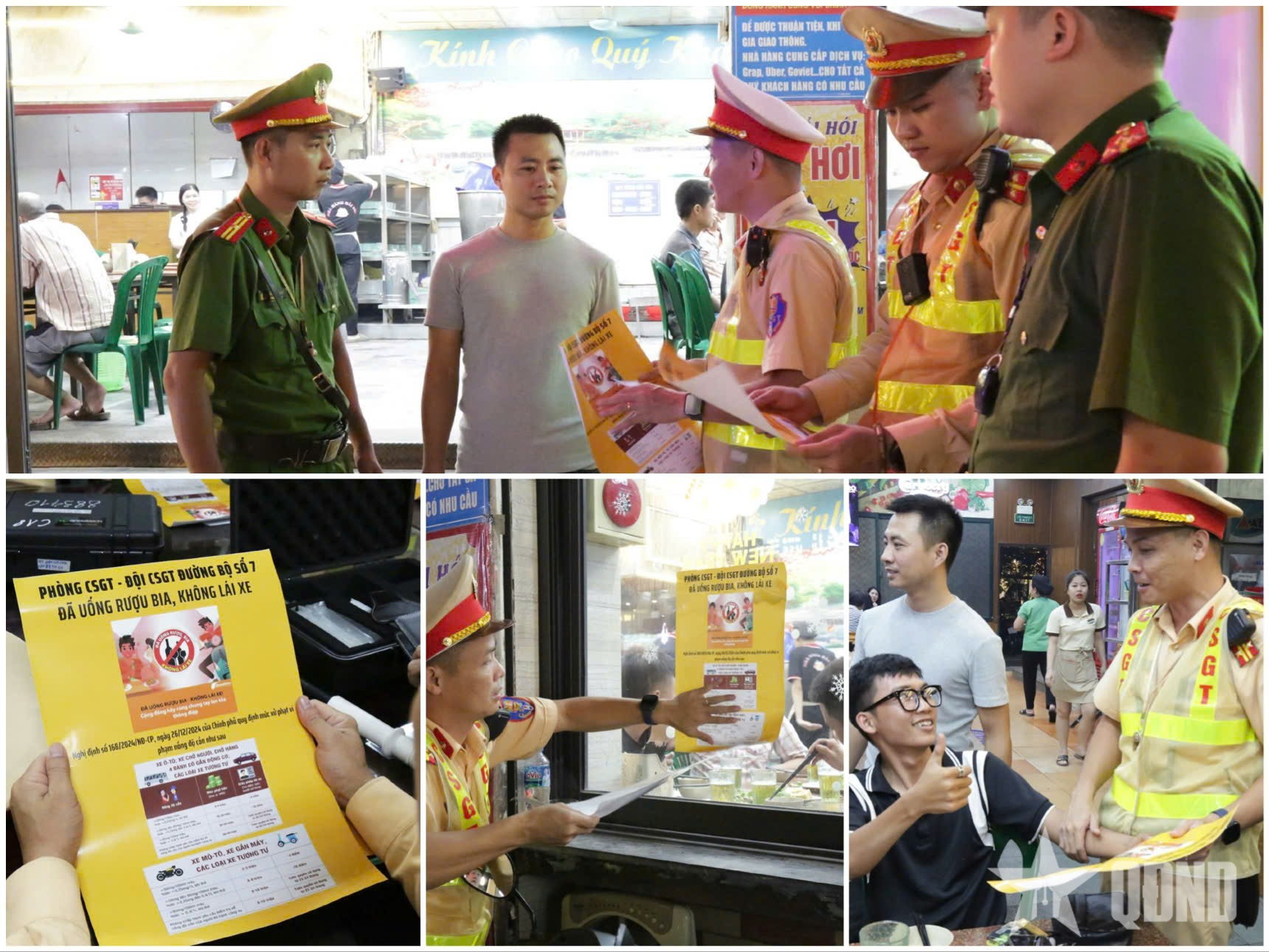 | Lực lượng chức năng trực tiếp đến từng nhà hàng, tuyên truyền vận động người dân chấp hành quy định "Đã uống rượu bia - không lái xe". |