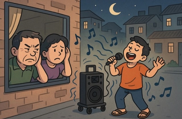 Hát karaoke là một thú vui giải trí, là quyền tự do của mỗi người. Thế nhưng, việc tổ chức hát, nhất là hát tại gia đình, hát ở nơi công cộng bằng “loa kéo” phải phù hợp, không gây ô nhiễm tiếng ồn làm ảnh hưởng đến người khác. Ngược lại, từ một nét sinh hoạt văn hóa, hát karaoke sẽ trở thành nỗi khiếp sợ của nhiều người vì bị “tra tấn” bởi những âm thanh chát chúa suốt ngày đêm.