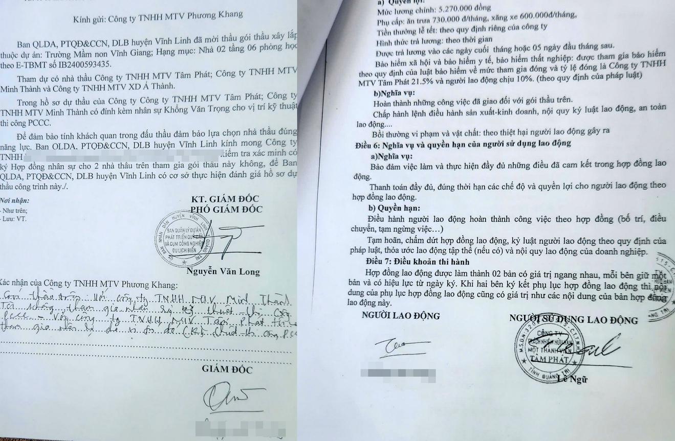 Thế nhưng, qua quá trình xác minh, kiểm tra, Ban QLDA huyện Vĩnh Linh phát hiện chữ ký của ông K.V.T tại hợp đồng nguyên tắc giữa ông K.V.T với Công ty TNHH MTV Tâm Phát có dấu hiệu giả mạo. Cụ thể, chữ ký của ông K.V.T trong Hợp đồng nguyên tắc với Công ty TNHH MTV Tâm Phát khác biệt nhiều với các chữ ký của ông K.V.T trong các tài liệu mà Ban QLDA huyện Vĩnh Linh đã thu thập.