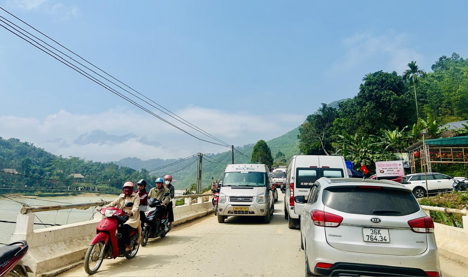 Phương tiện tham gia giao thông ngày mùng 5 Tết trên tuyến đường đến khu di tích danh lam thắng cảnh Đền Cửa Đạt, tỉnh Thanh Hoá. Ảnh: Hương Trà