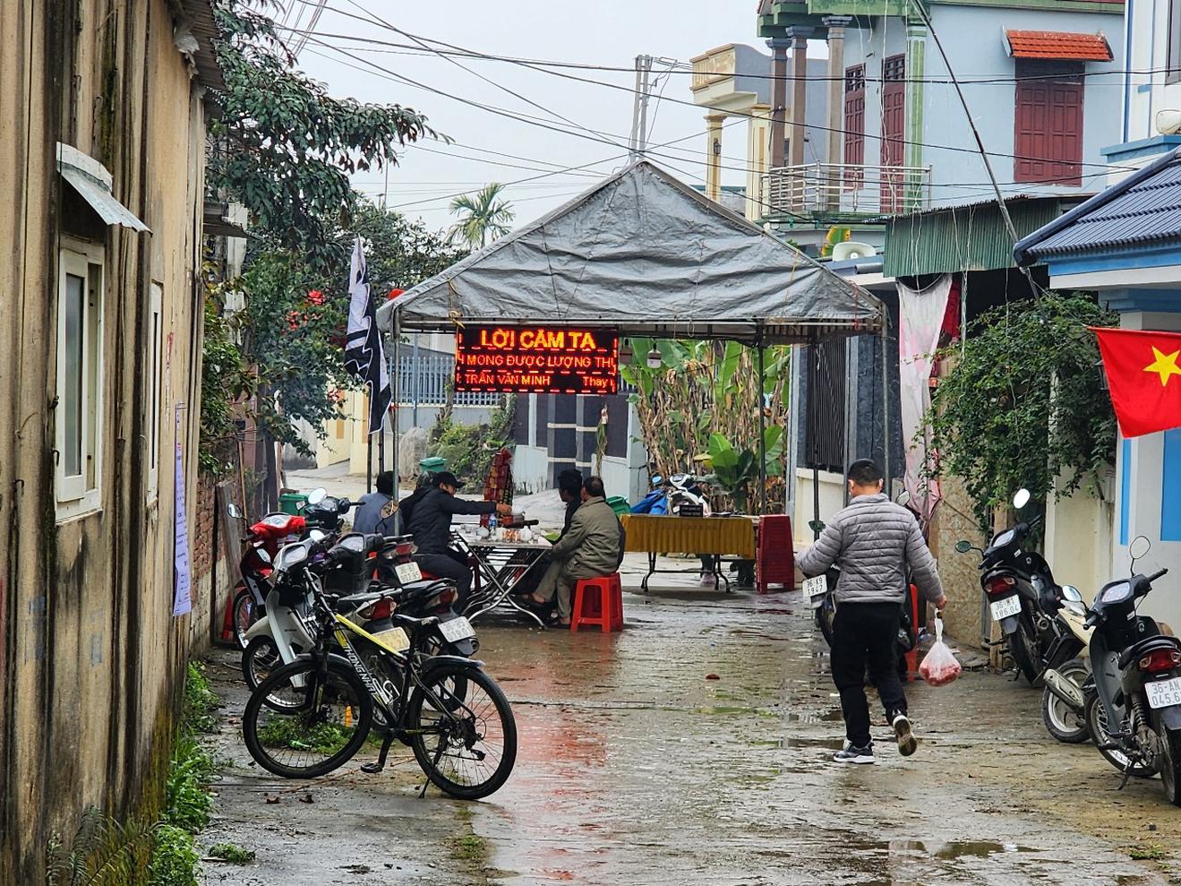 Gia đình lo hậu sự cho bà Chu Thị Minh, khu phố Tây Nam, phường Quảng Vinh. Ảnh: Hương Trà