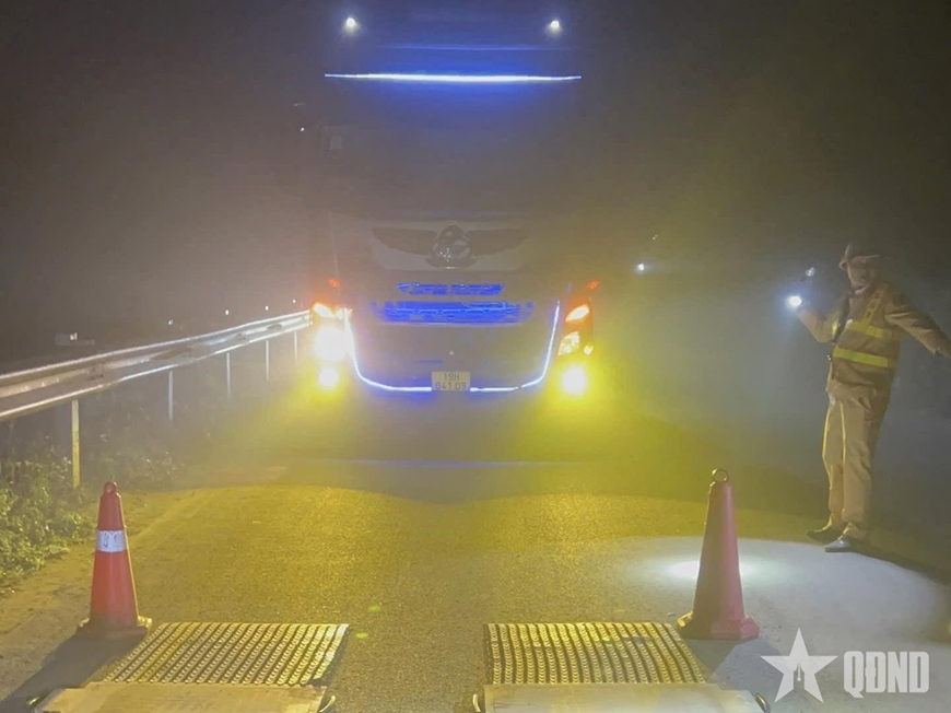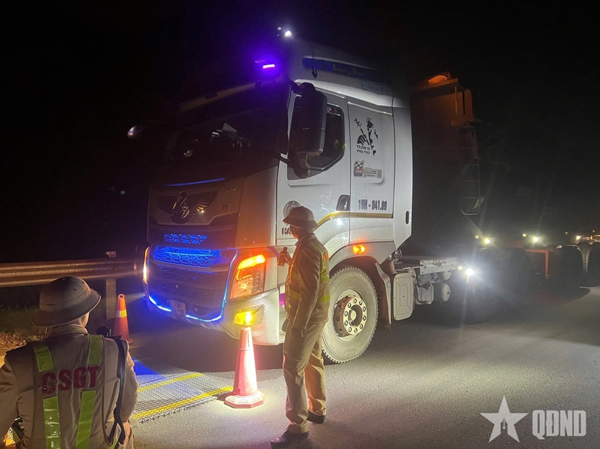 | Đội CSGT đường bộ số 9 kiểm tra tải trọng ô tô chở vật liệu xây dựng đêm 7-12. |